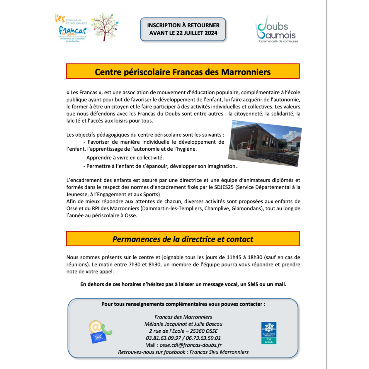 INSCRIPTIONS AU PERISCOLAIRE ET A LA RESTAURATION