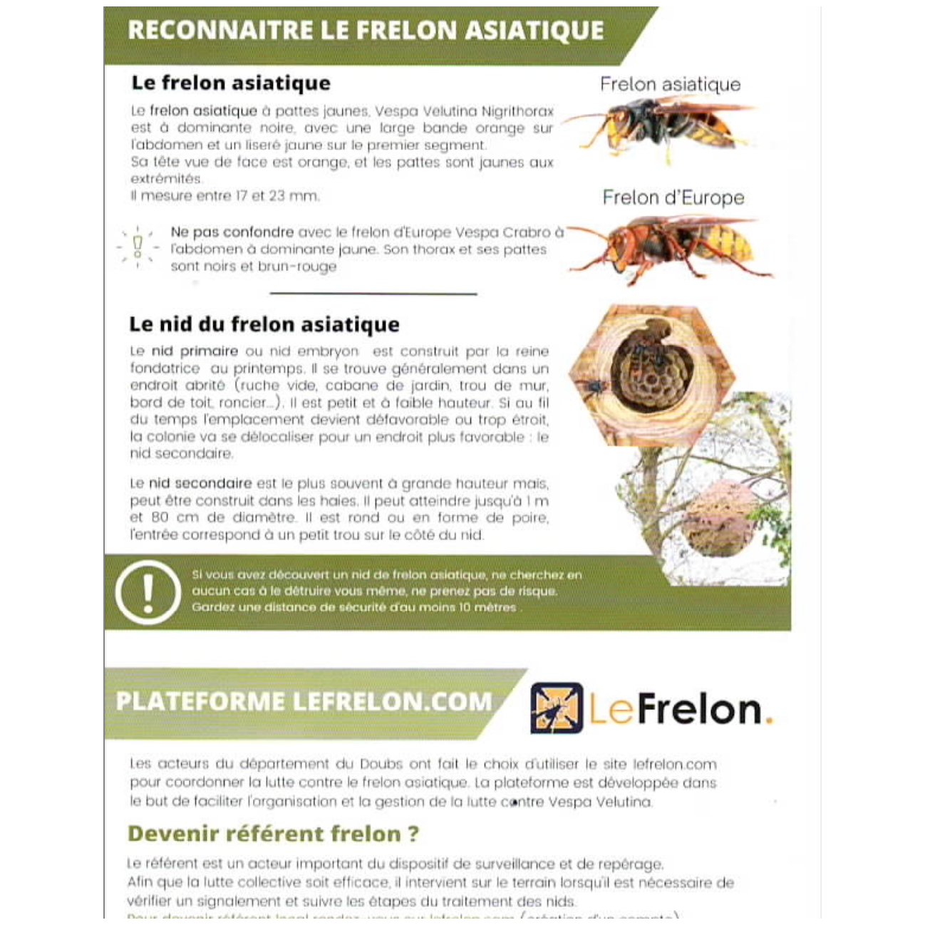 Signalons la présence des nids ou des frelons sur le site " LEFRELON.com